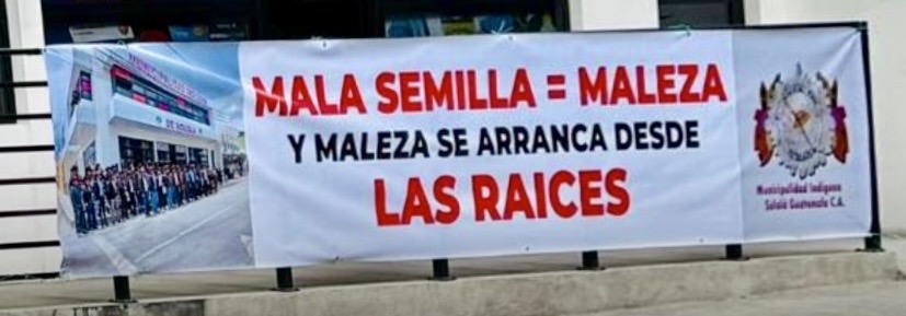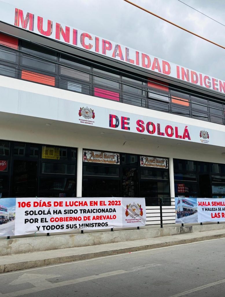 Hoy, ese respaldo se rompe. La municipalidad indígena de Sololá ha colocado mantas frente a su sede con mensajes directos contra el gobierno: