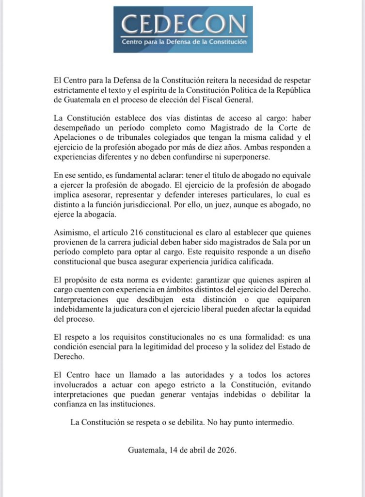 En su pronunciamiento oficial emitido este 14 de abril, el Centro subraya que el respeto a estos requisitos no constituye una mera formalidad, sino una condición esencial para garantizar la legitimidad del proceso y la solidez del Estado de Derecho.