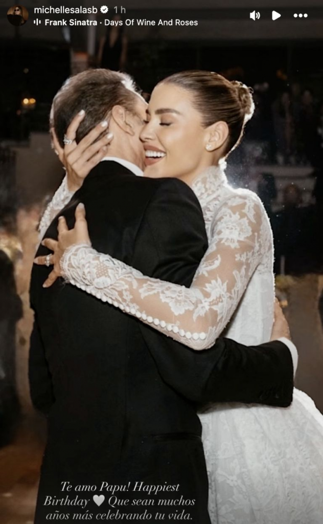 A través de sus historias en Instagram, Michelle Salas sorprendió a sus seguidores al publicar una fotografía inédita junto a Luis Miguel. En la imagen ese observa a la modelo fundirse en un gran abrazo con su padre en el día de su boda con el empresario Danilo Díaz Granados que se celebró el 14 de octubre de 2023 en la exclusiva finca Il Borro ubicada en La Toscana, Italia.